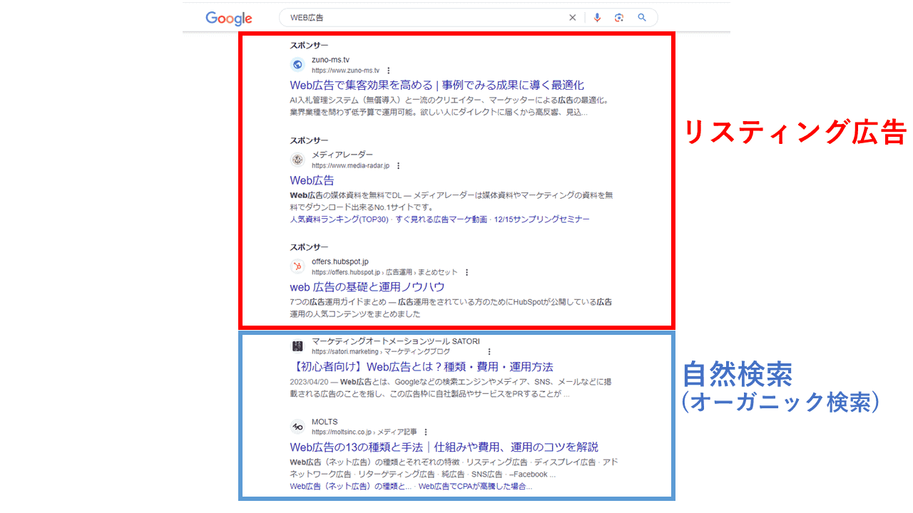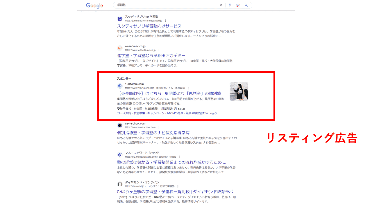 - 表示場所:GoogleやYahoo!の検索結果ページの上部・下部に掲載