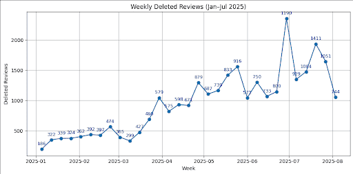 ”Between January and July 2025, review deletions surged to unprecedented levels.”